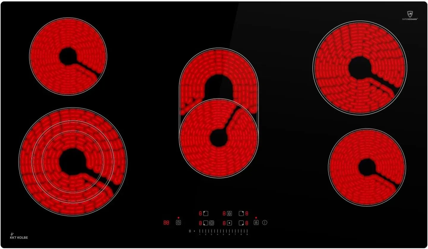 KKT KOLBE 90 cm Autarkes Glaskeramikkochfeld, 8,7 kW, 5 Kochzonen, 9 Leistungsstufen, Bräter- und Dreifachzone, rahmenlos, Timer, Restwärmeanzeige
