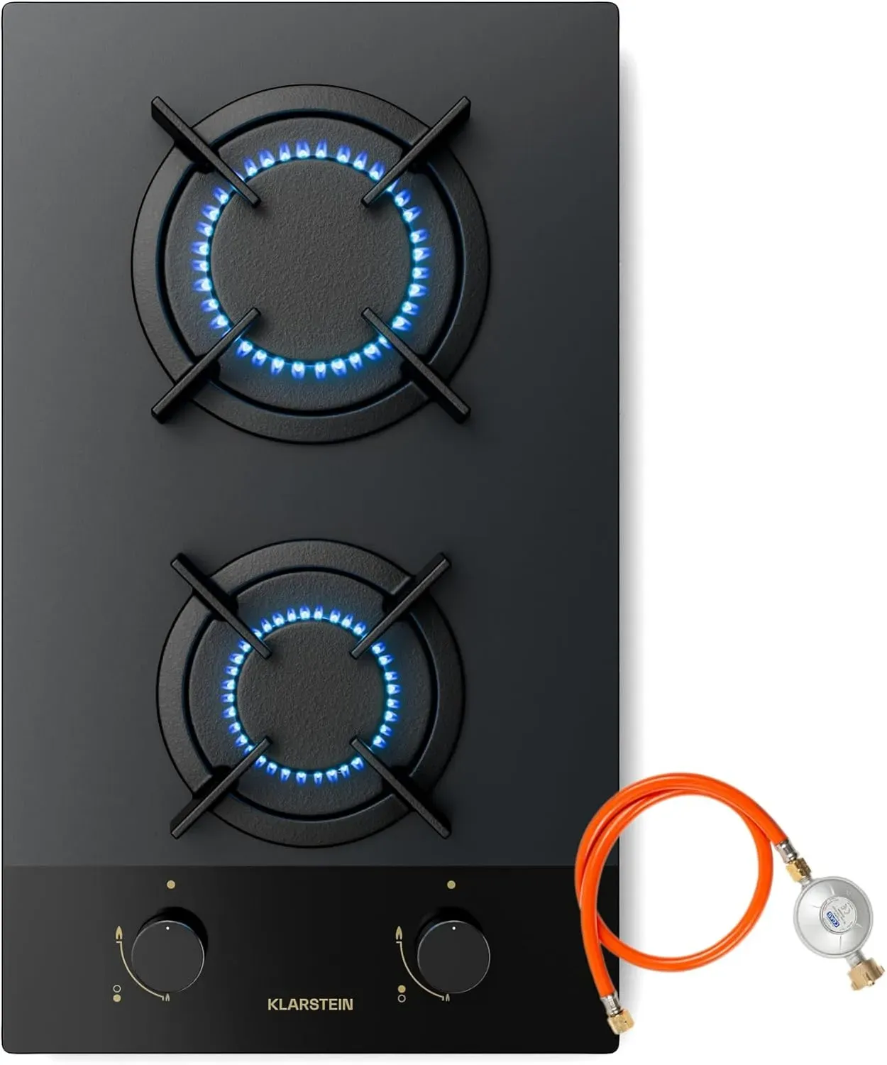 Klarstein 2-Zonen Gaskochfeld, Messingbrenner, 4200 W, Nanoglas, Flammenschutz & Automatikzündung
