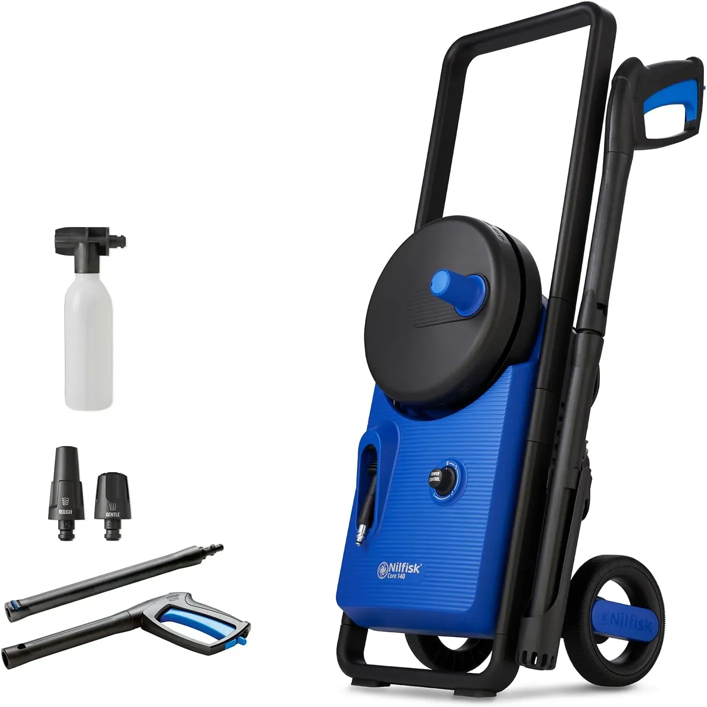 Informationen: Der Nilfisk Core 140-6 bar Hochdruckreiniger kombiniert Leistungsfähigkeit und Vielseitigkeit. Die Druckeinstellung erfolgt bequem an der Hochdruckpistole. Der Hochdruckreiniger kann in Innenräumen, auf Terrassen, in Garagen und Gärten verwendet werden.